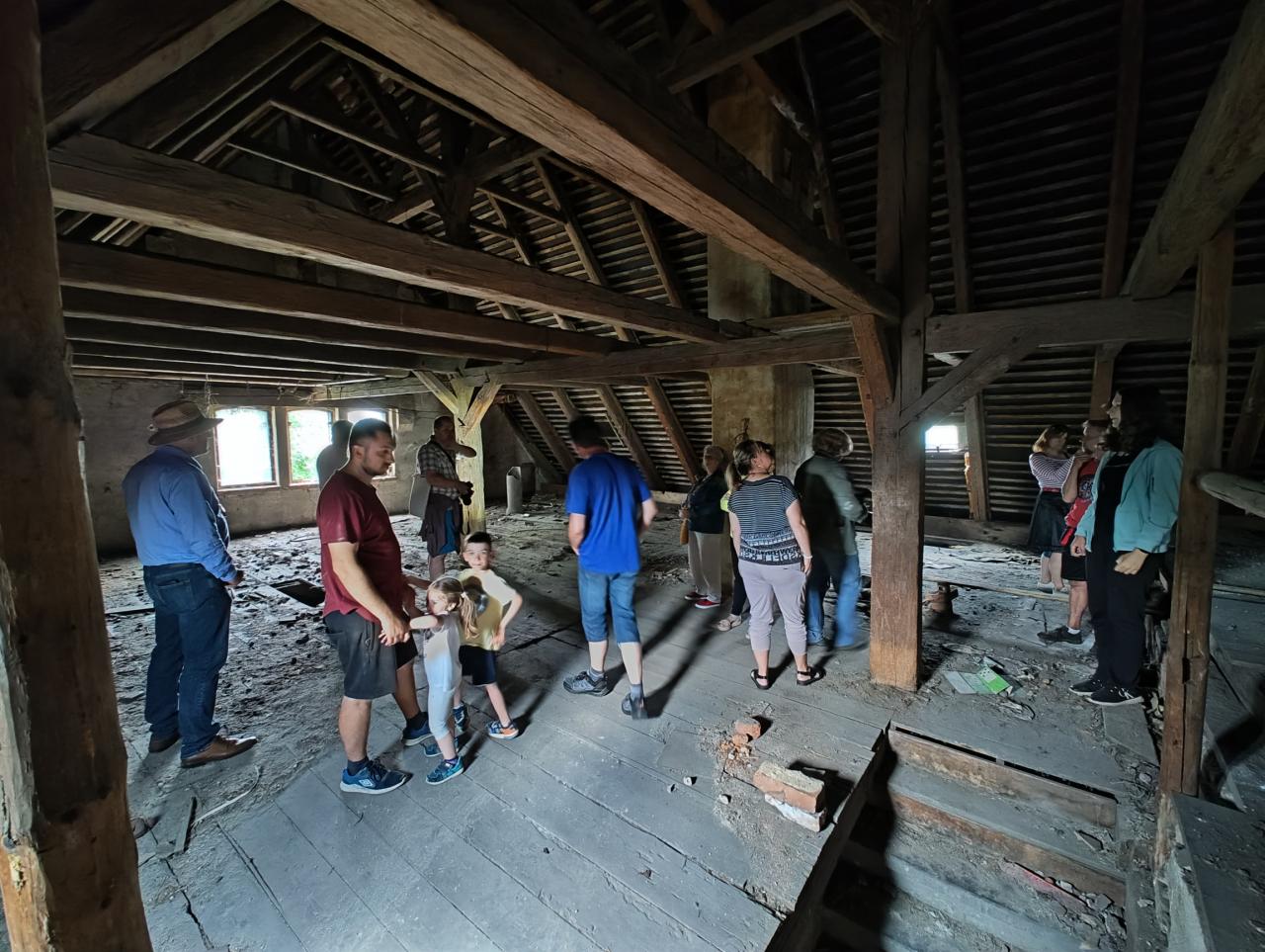 Po úvodních výkladech se skupina přibližně 20 návštěvníků vydala na kompletní prohlídku všech budov, které prošli od půdy po sklep. Průvodce jim dělal starosta obce Milan Götz, který postupně představoval možnosti využití jednotlivých objektů a jejich prostor. Zhruba hodinová prohlídka skončila v místě bývalé přípravny krmiv, kde na účastníky čekalo malé občerstvení přichystané dobrovolníky z nově vzniklého místního spolku KUPA. Přítomní si zde mohli také prohlédnout fotografickou výstavu o povedených proměnách brownfieldů v našem kraji, kterou obci pro tuto příležitost zapůjčila Agentura regionálního rozvoje Libereckého kraje.