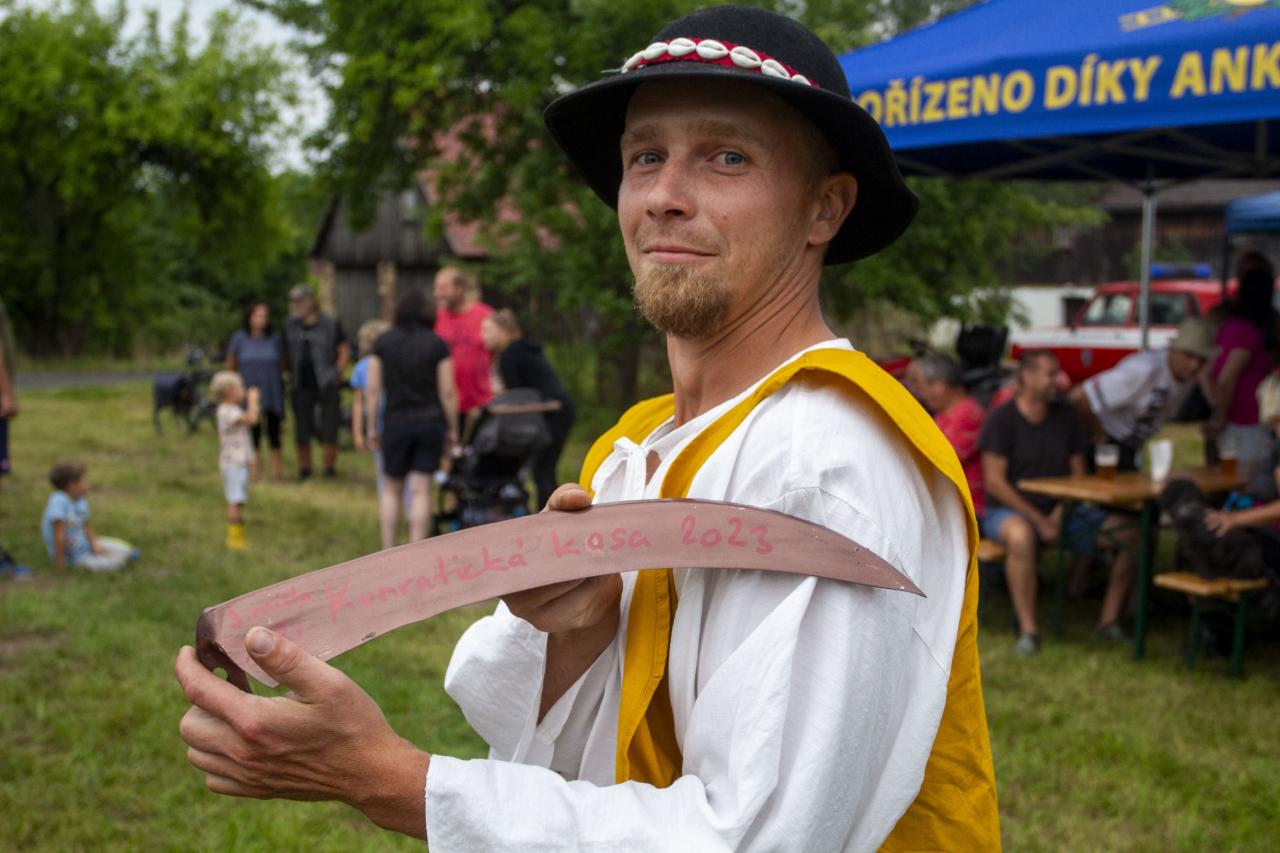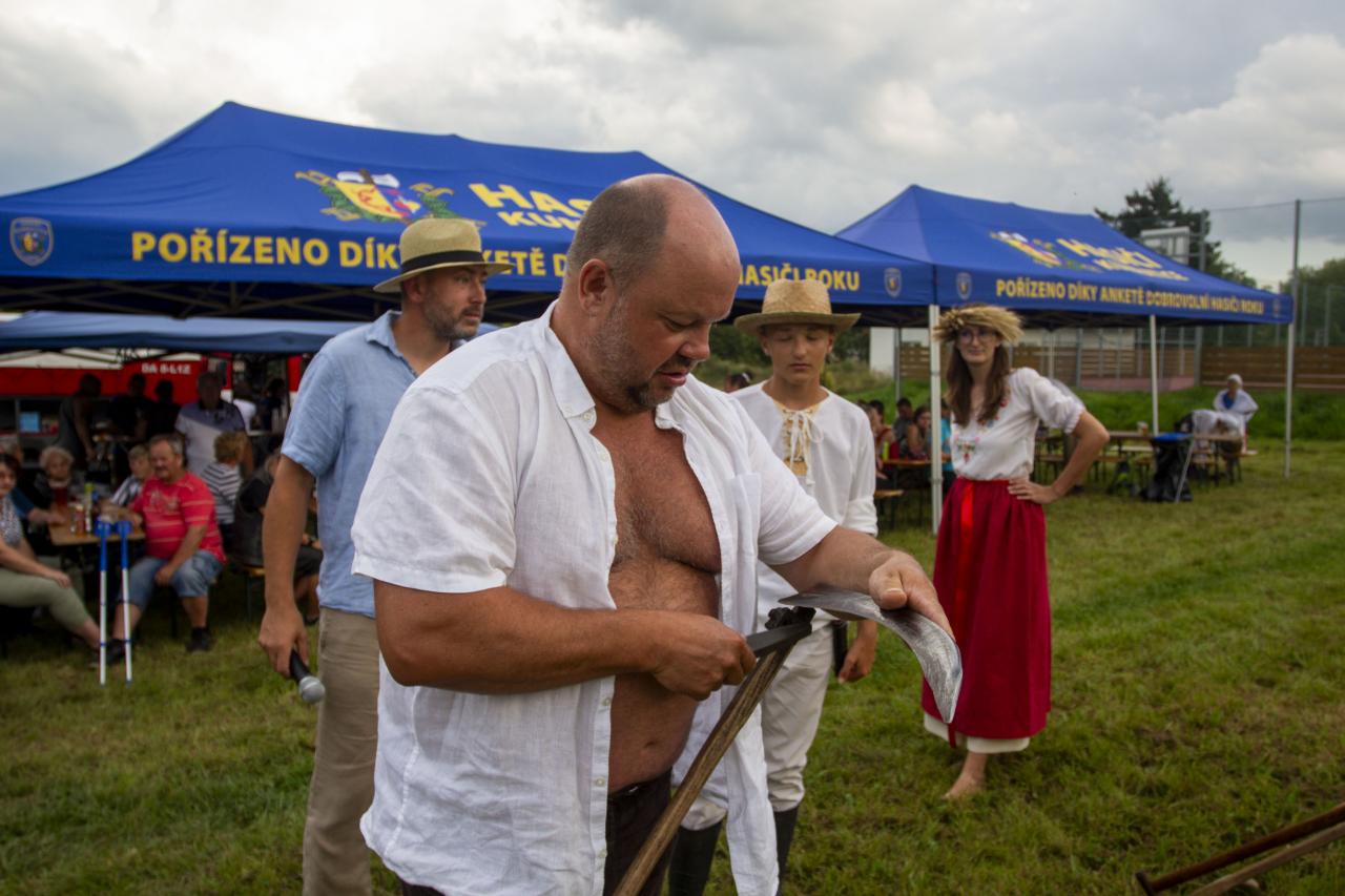 Obecní louka mezi bytovkami a fotbalovým hřištěm se po roce opět stala dějištěm tradiční vesnické soutěže, v níž 3 ženy a 8 mužů zkřížilo kosy s narostlou otavou. Přestože předpověď počasí nevěstila nic dobrého, nebesa se smilovala a hrůzostrašný scénář se nakonec nenaplnil. Malá přeprška naopak navlhčila trávu, čímž sekáčům usnadnila práci. Počáteční deštík naštěstí neodradil ani diváky a tak se postupně zaplnily i připravené stany, v nichž se nakonec sešlo na šest desítek návštěvníků.